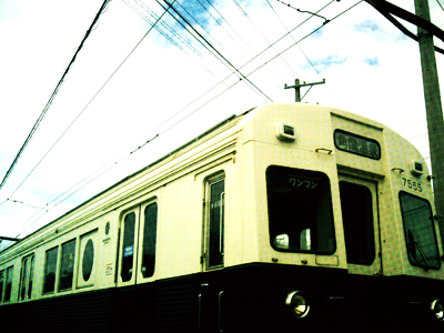 角間温泉行の丸窓電車!!!